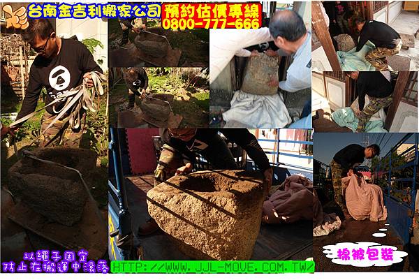 此外為避免地板被石頭毀傷,先用厚棉被舖在地板上,後以滾動的體例滾置起落尾門上,待搬運至車上後,再用棉被包裝。